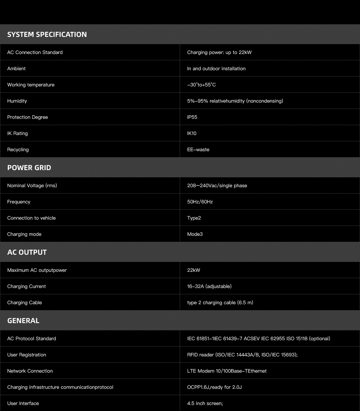 - Charging power up to 22 kW