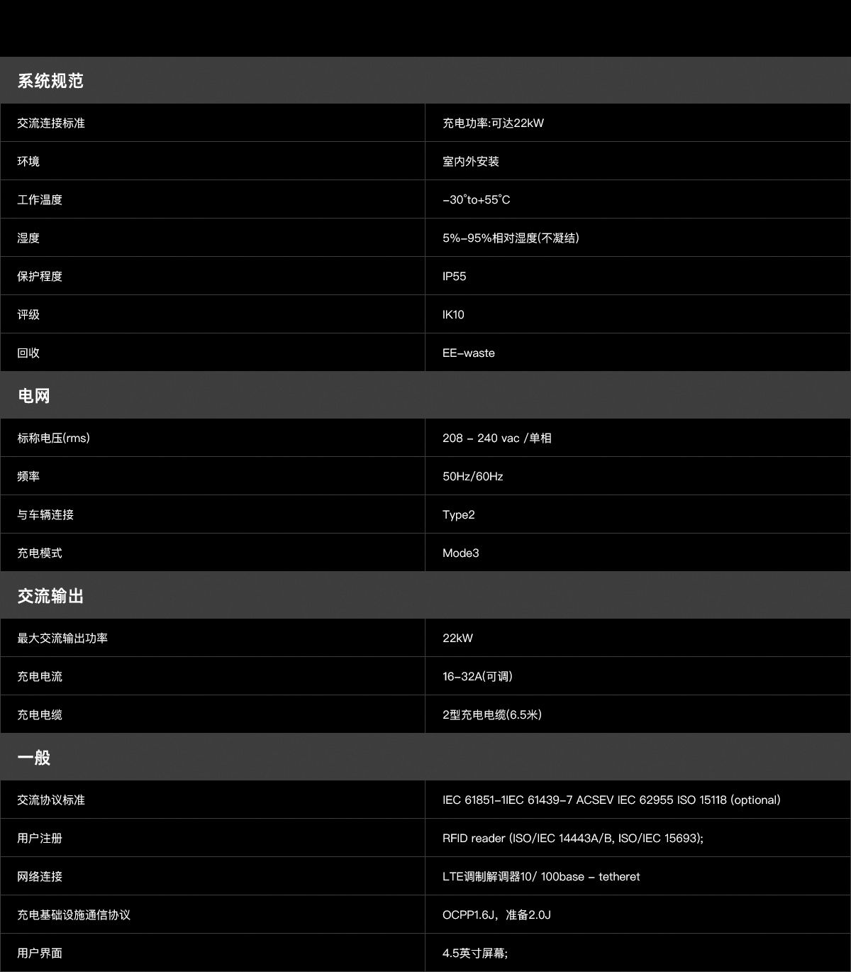 - 充电功率高达22千瓦